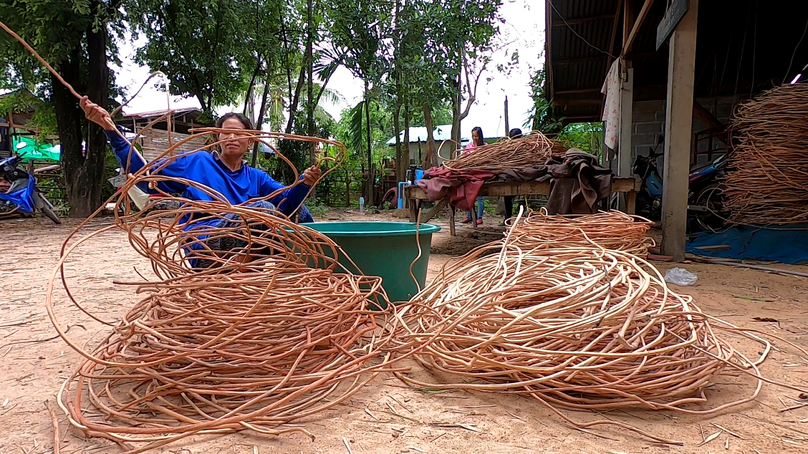 มาที่นี่ก็ทำงานแบบนี้มาตลอด ไปหาเถาวัลย์ตามป่า ซึ่งก็ทำได้ทุกอย่างที่เป็นเถาวัลย์แบบนี้